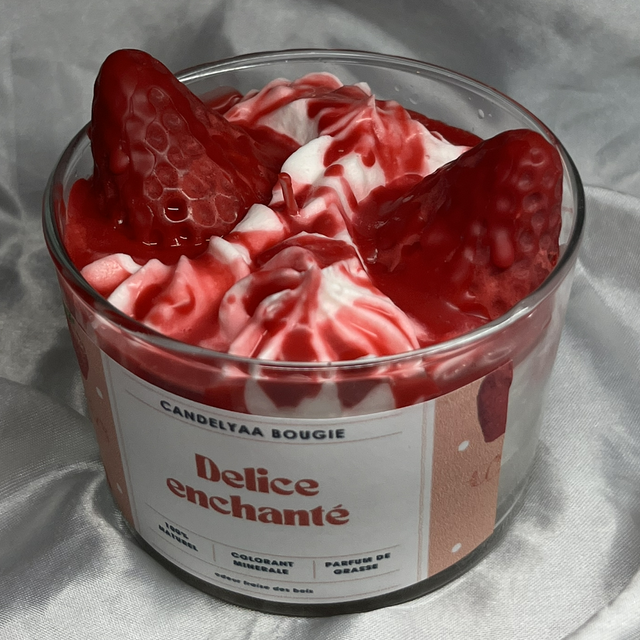 Succombez à la douceur fruitée et sucrée avec la bougie Délice Enchantée. Inspirée par la gourmandise et les plaisirs de la pâtisserie, elle diffuse un parfum fraise juteuse, délicat et gourmand, idéal pour créer une ambiance joyeuse et réconfortante chez vous.